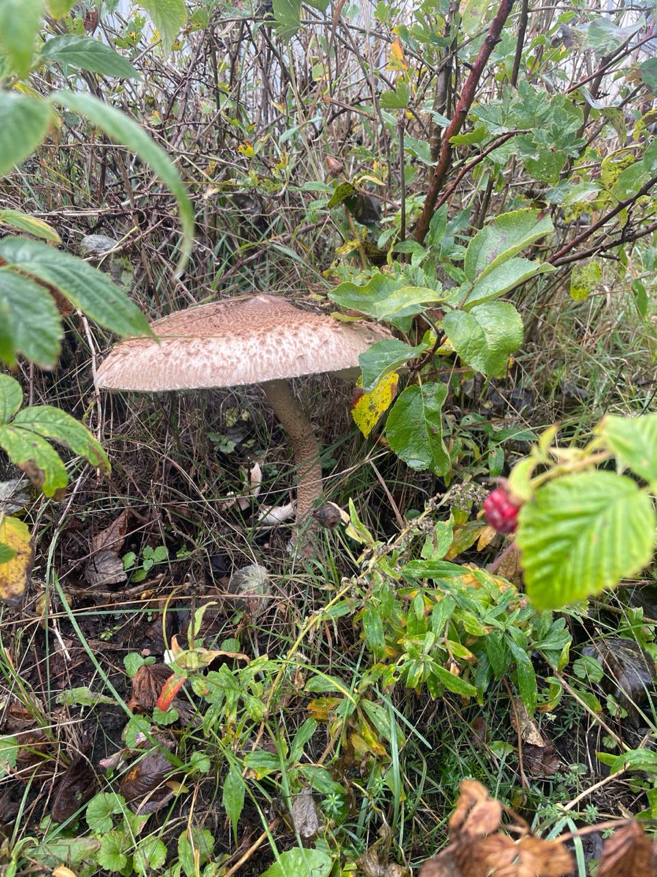 Так це парасолька, або курка. Різновід сірих мухоморів. НЕ ЯДОВИТ. Є несмачний підвид, але він не частий - якщо попадеться він просто несмачний буде. Небезпечний для людини тільки один від парасольки ,але вам він ніколи не попадеться - росте в Новій Зеландії От там їх не треба збирати.