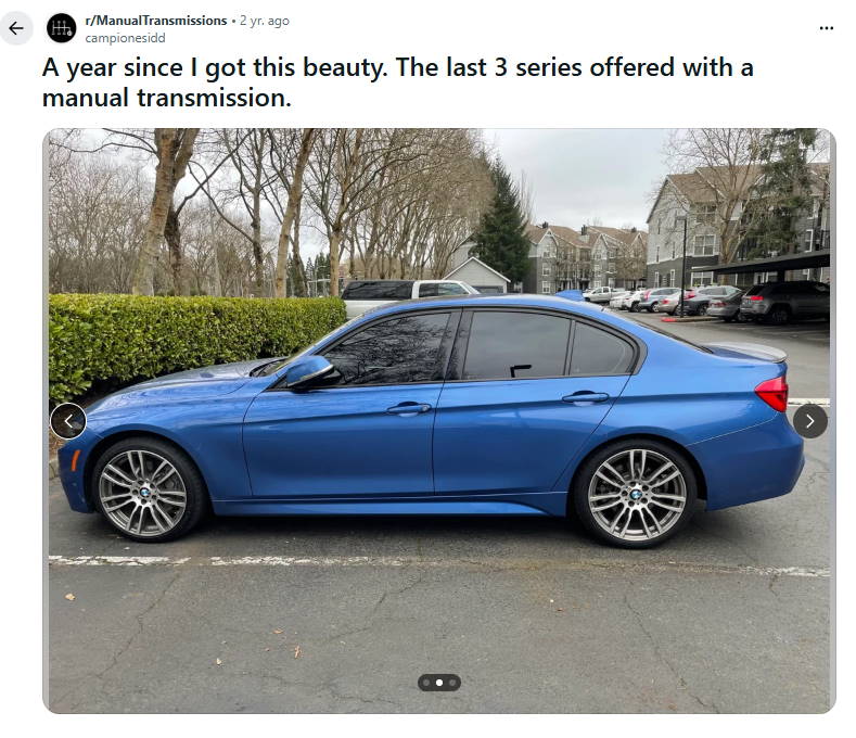 Серійно - з МТ могла бути тільки БМВ3 передостаннього покоління. В G20 цей рудимент залишили виключно для M3... Ну а про механіку в штатах - там зараз типу мода, чи бум на стікшифти. Онлайн-комуни в фейсбуках, реддітах ітд... Ну та зрештою і правильно. Зазнають якоїсь радості після 50 років нудьги на 5-літрових пікапах з 4-ступінчатими автоматами... Європа навпаки вже наїздилась...