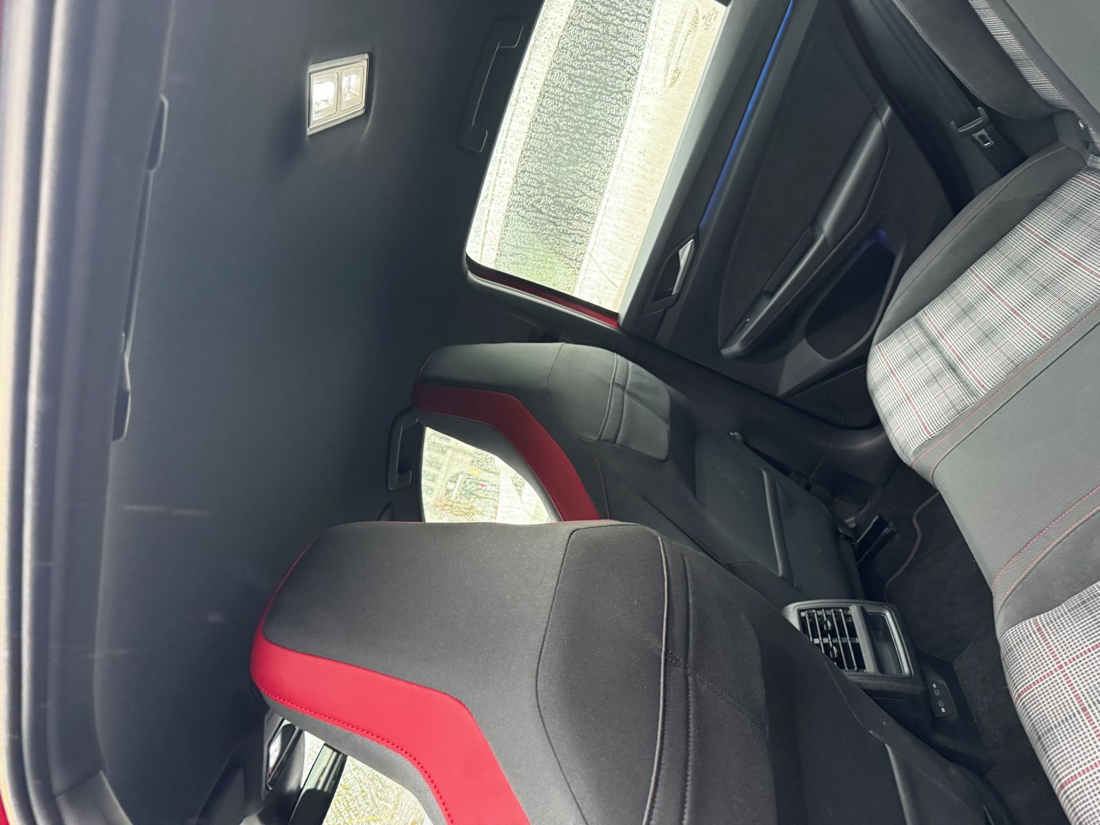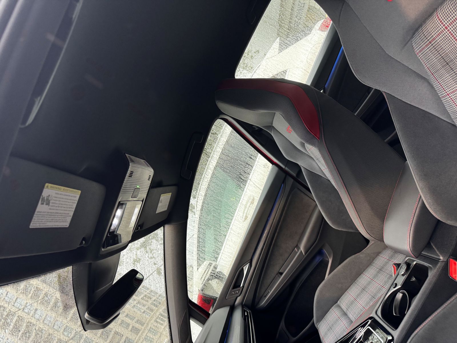 Передня частина. Стеля як стеля, най буде. Годиться. Сидіння - фірмова "ганчірка" в кольорах для GTI ("ганчірку" люблю більше, ніж шкіру молодого дерматіна). Прекрасно, можна брати! Це єдина машина 2024 року, з повноцінним чотирициліндровим двигуном, малим пробігом, яка зараз виставлена у продаж по Канаді, з суцільним дахом, пофарбована як треба у прийнятний (бажаний) колір.