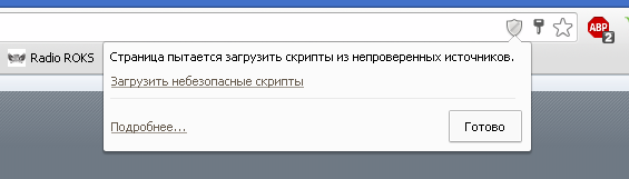 Google Chrome - в правой части адресной строки нажать на "Загрузить небезопасные скрипты":