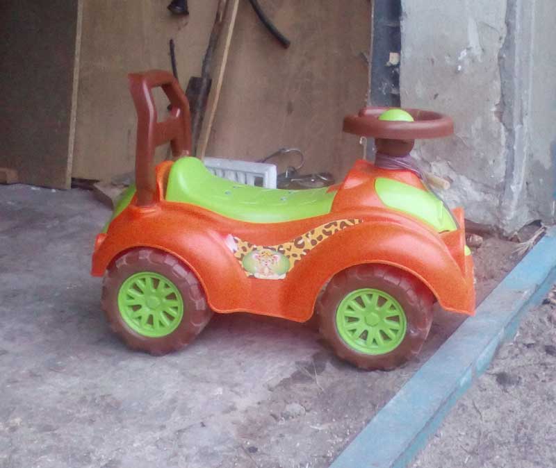 Собственно сам автомобильчик на фото. На случай буксировки есть самодельная ручка с крепким шнурком, который можно складывать в передний багажник.