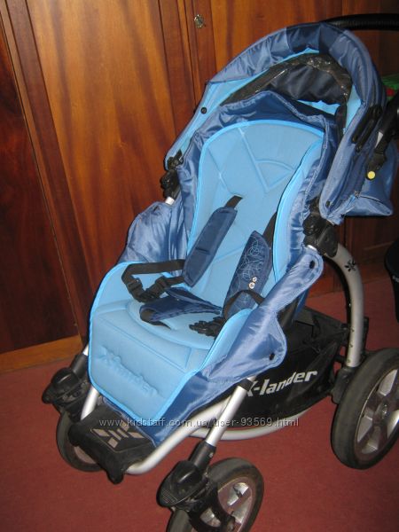В комплекте - люлька, прогул.блок, москитка на люльку, дождевик на прогулку, чехол на ножки (очень им довольны! зимой полностью ребенок был утеплен), маленькая сумочка на пояс/крепится к люльке (на фото2), вкладыш в прогулку, матрасик в люльку, насос. много фото тут http://picasaweb.google.com/102371384397603242478/XLander?authkey=Gv1sRgCPOOrr_muq6klwE