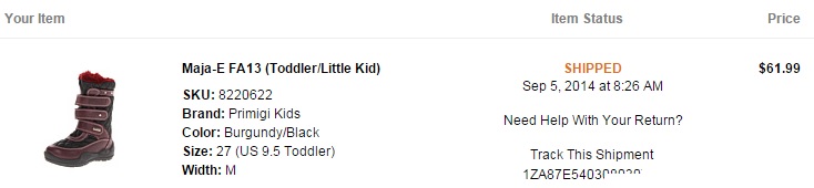 Зимние сапоги Primigi, модель Maja-E FA13 р.27 американский 9.5, куплены на 6pm.com год назад, отношены 1 сезон. Цена была 62 у.е. + доставка Мистом, сейчас цена 500 грн. Приаттачен скрин на заказ с 6pm.com. Сапоги замшевые, верх текстиль с элементами меха, очень теплые, мембрана Gore-Tex. Состояние очень хорошее. Ссылка на объявление на олх