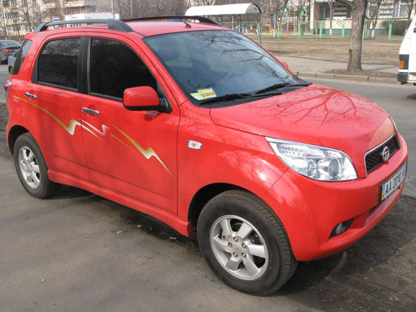 Всем привет..Вот и второй Териос!!!. взяли жене Териос на Кировоградской - ДИАС-УКРАИНА ( 22-03-2008).. в понедельник все машинки уже подорожали - капут! 1,5 двигатель, 5МТ, (DX - в простой комплектации). Серебро-металлик. Прикольно: Как на комбайне едешь: высоко.. у меня-то Сивик... Со слов жены после тест-драйва: автомат - "позадумчивей", МПК - чувствуешь (она всю жизнь на механике).Взяли механику. Ребята отнеслись по "нормальному". 1 к 1 посчитали стоимость без всяких там курсов (тогда в Киеве доллар рухнул конкретно). "Правильную цену вписали в справку-счет - для постановки в ГАИ и Пенсионного!!! так что, вложились в 800 юсд на все и на всех "знакомых" в ГАИ. Пока нормально. Не перегружаем. Одно интересует: СТО. Кто купил не на ДИАСЕ, что говорят: расходники, специалисты.. и т.д... пишите, важно... Единственным плюсом в выборе ДИАСа то, что они только и Дайхатсами и занимаются. Т.е. есть надежда, что они не специалисты широкого профиля, а более-менее узкие специалисты. Дали гарантию. Между прочим, в англицкой книжке интервал ТО - 15000 км ( читал выше в посте, что ц кого-то 10000). На 2000 - замена масла - по укр. гарантии. И еще "прикол" - на обратной стороне эмблемы Дайхатсу, которая на решетки радиатора, есть надпись из пресс-формы.. как вы думаете какая? - TOYOTA !!!