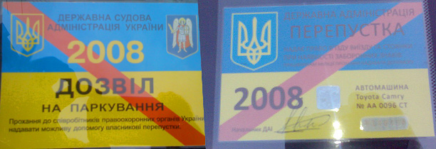 Вчера поступила инфа, шо у есть внутреннее постановление забирать всю "полиграфию", которую тычат им доблестные автолюбители: парковка, внештатный сотрудник ДАИ, вобщем все, кроме оперативного талона!!! А на дозвил паркування от судовой администрации требуют удостоверение судьи. Если нету, то забирают! И вроде это договоренность с мерией, и паркофчеги об этом уже знают!