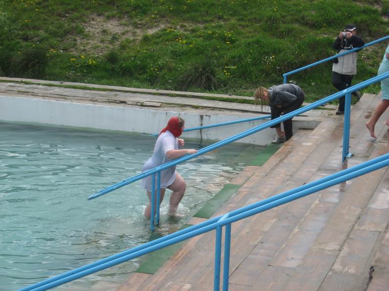 Для исцеления надо купаться, ясное дело. И некоторые таки купаются! А водичка - градусов 8-10 от силы...