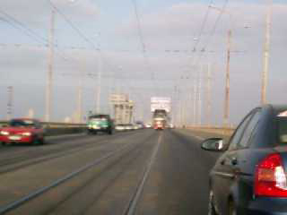 Насколько мне кажется, разрешена езда по трамвайным путям попутного направления при условии, что они на одном уровне с дорожным полотном, а на мосту это или в городе - неважно. Но ежли перед мостом стоит знак "Обгон запрещен" (и действовать он должен как минимум до конца моста), предполагается однополоска, значит, в таком случае движение по трамвайным путям таки запрещено. ИМНО