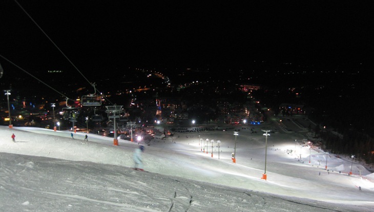 В общем и целом, конечно, понравилось - так чтобы один раз съездить в качестве экзотики, посмотреть - особенно с ребенком - в снежную сказку, дед мороз и все такое ))) На закуску еще краевид - с траверса )) Для разнообразия покататься в ночи на абсолютно пустых склонах между елок, конечно, довольно интересно. В общем, у кого есть дети и кому некуда будет потратить свои замние каникулы в след году - рекомендую