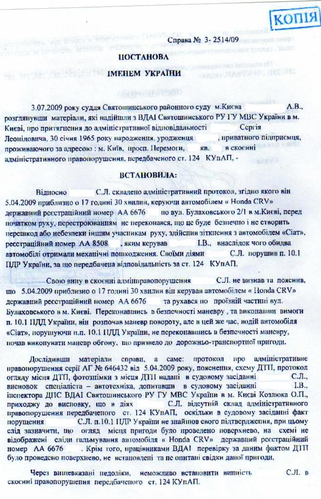 Сегодня написал скаргу в Прокуратуру района, в которой прошу "порушити адміністративне провадження відносно (второго участника ДТП)"
