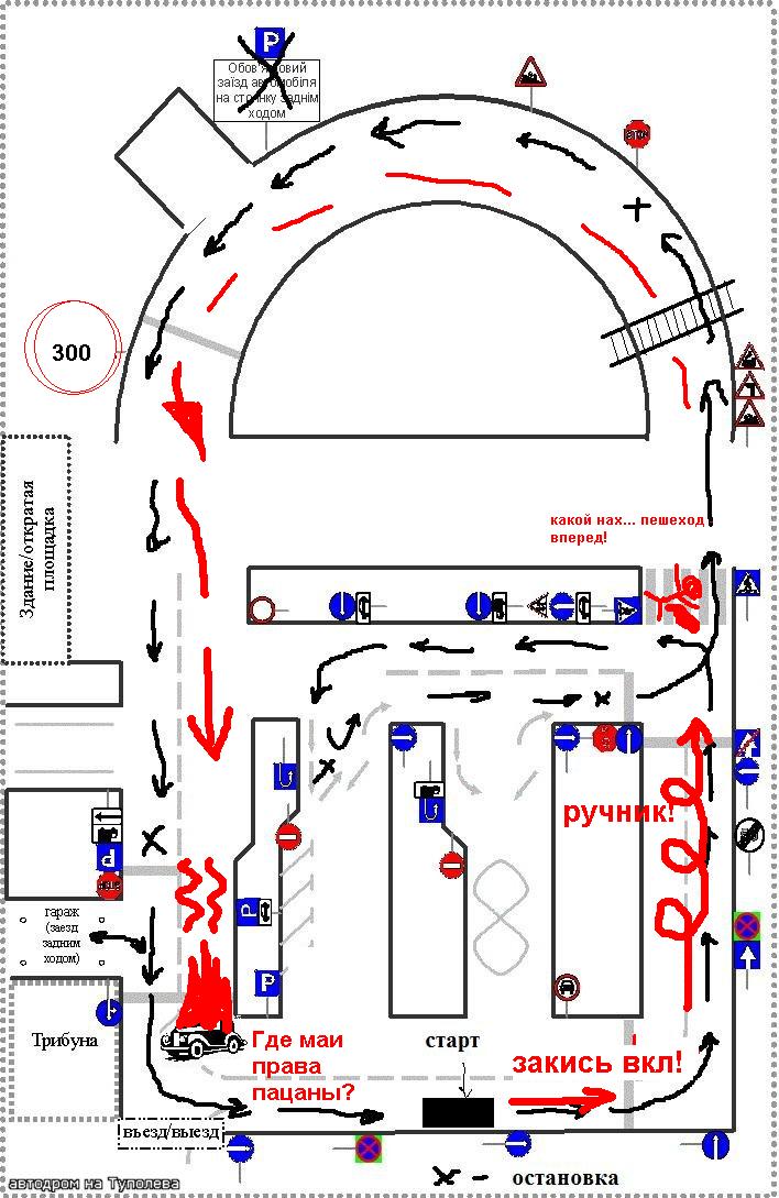 не, уже не надо... дык там же знаки намалеваны даже... Сначала "ласточка", потом горка, потом заезд задом в "гараж"