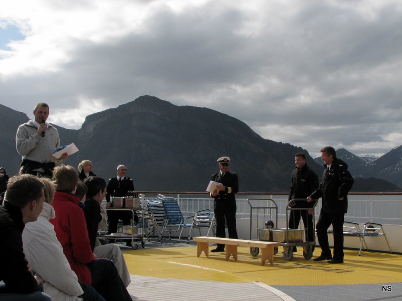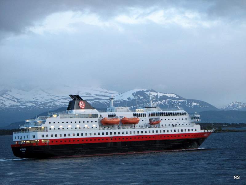 Hurtigtuten, произносится Хюртигрютн, норвежская транспортная линия, основанная в 19 веке, когда дорог вдоль моря было мало, и это была единственная связь для прибрежных районов. Finnmarken был первым кораблем Hurtigtuten, с тех пор это бренд и название северного района Норвегии, по размерам больше Швейцарии. Норвежцы гордятся Hurtigtuten, по всему пути следования их приветствуют. Многие считают этот круиз самым красивым в мире. Каждый день корабль Hurtigtuten стартует из Бергена. Круиз выполняет и транспортные функции, можно путешествовать и из порта в порт, машины можно загружать в трюм. Hurtigtuten находится в постоянном обновлении, работы ведутся ежедневно и незаметно для путешественников. Каждый день выдается программа дня, где перечислены порты по пути, время стоянки. Отдельный пункт – это приветствие встречного Hurtigtuten – идите на 5 этаж и размахивайте полотенцами в такое-то время! Сообщения ведутся на 4 языках – норвежском, немецком, французском и английском. Это встречный Hurtigtuten