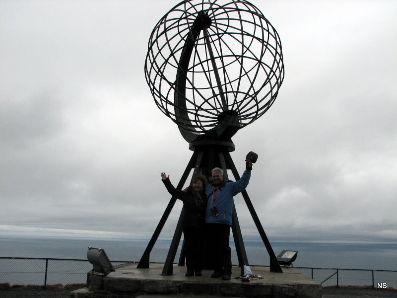 На Нордкапе показывают новый фильм, дающий представление о смене времен года здесь. Но поймать такие живописные моменты трудно. После фильма глобус уже затянуло туманом! Ледовитый и Атлантический океаны скрылись в тумане!