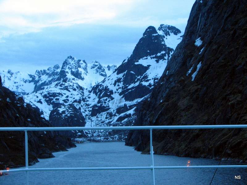 Вскоре начались Лофотены, живописные острова, спать уже почти не ложились. Закат сменял рассвет или были одновременно... Появились пассажиры до Лафотенов, среди них мужской фольклорный ансамбль. Национальные песни в отличном исполнении белой ночью на фоне проплывающих Лафотенских островов - я в Раю!