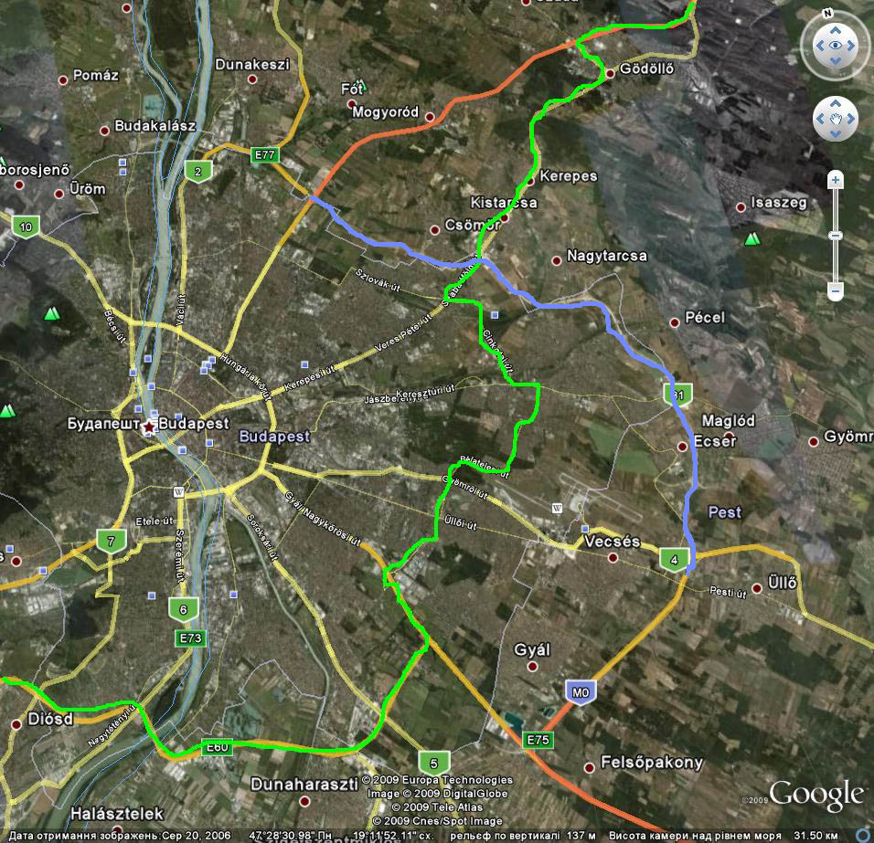 - как вариант удачного объезда Будапешта - предлагаю, см. файл. с автострады надо съехать чуток раньше на Godollo, потом "тихими" улочками , они со светофорами, правда - но мой опыт показывает , что так реально быстрее будет, особенно если едите ни ночью. Надо простыми улицами добраться до Е60 ( М0 ). Дальше снова по автострадам. Этот маршрут можно выставить на GPS ( я пользуюсь I-go ) - тогда движение по "тихим" улицам не составлет никаких проблемм.