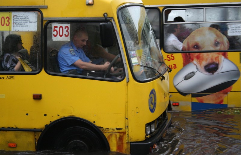 Попал в него вчера на Полтавской трассе. Тупо с неба упала стена дождя. скорость 30 не виднно ничерта и волны от машин. И молнии с двух сторон от трассы лупят. Зрелище ну его. А потом зачетно поплавал на Подоле. Сонато-катер :)