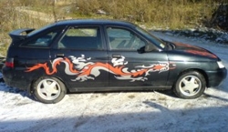 Привет все! Вот читаю вас и съмеюсь!!! Простите если что! Ведь в сети имеются куча интернет магазинов которые продаю наклейки по недорогим ценам, и по личным заказам. Вот недавно делал себе бока, дракона клеил! Отлично получилось. К стати сам рисовал и эскиз давал! А они там уже сами всё делают! Делал к стати вот тут: www.vinils-tuning.ru . Отличные ребята! Советую! Вот к стати моя авто, они даже её на главную страницу поставили: