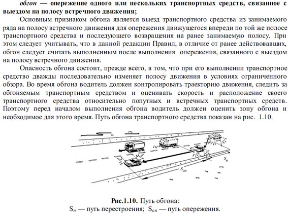 обгін — випередження одного або кількох транспортних засобів, пов'язане з виїздом на смугу зустрічного руху;