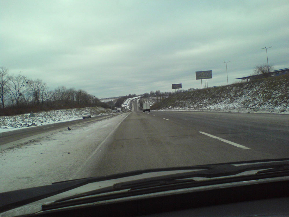 31.12.09 Киев-Мелитополь по харьковской трассе через Кобеляки ,Решетиловку заняли 10 часов выехал в 00.00 по Киеву и был за Мелитополем в 09.30 до Харькова трасса ужастная-после, 100-110км/час машина идет на ура,дорога нормальная,шел дождь но зимой и не пахнет.