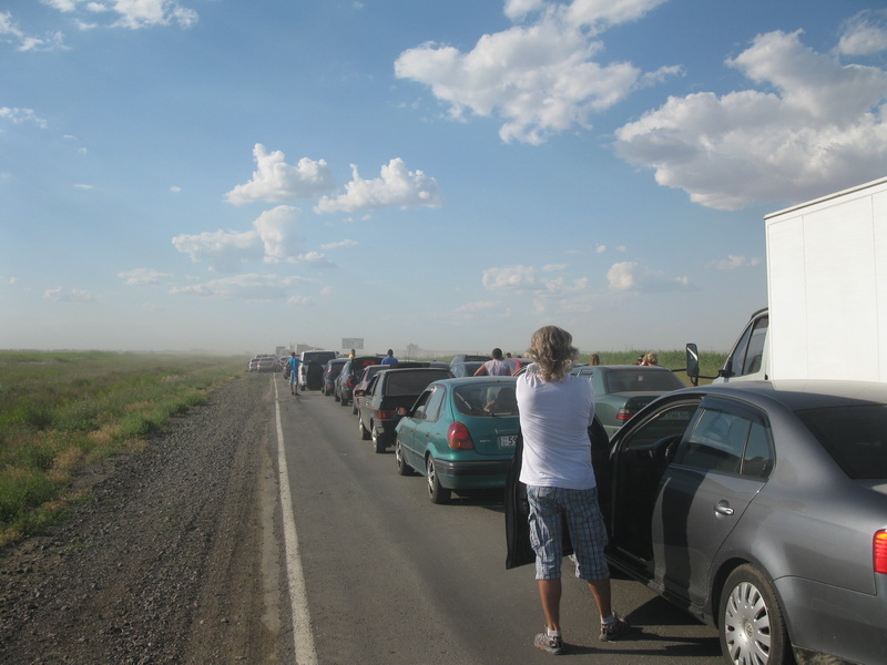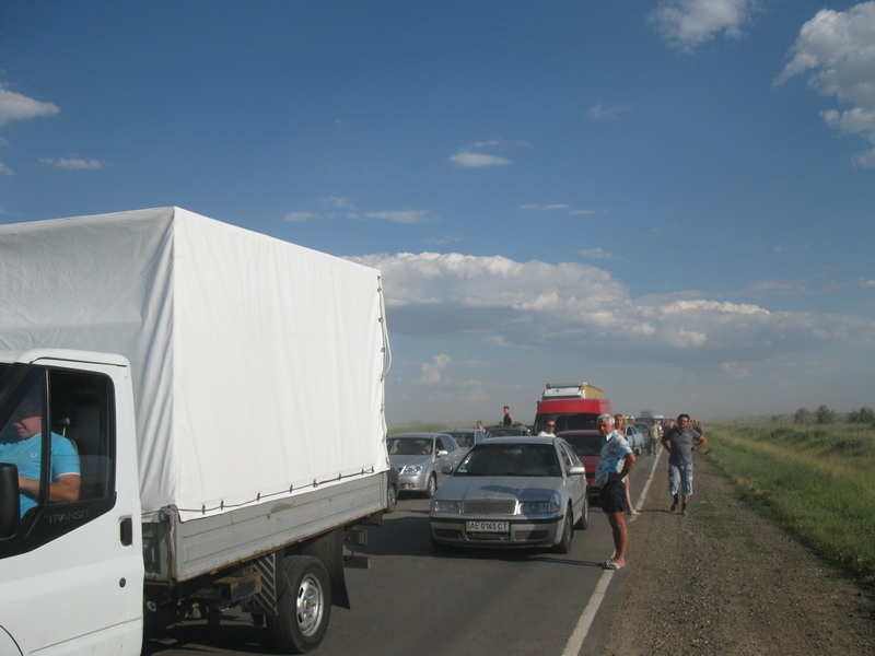 Я даже не фоткал, был в тихом ужасе. Кто не понял- это машины стоят в своей полосе, на встречке, занято 2 обочины, полями пытаются прорваться. Битва за Перекоп.