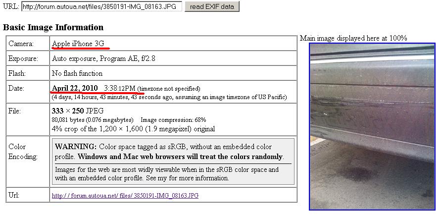 По exif-у видно что фоткали таки действительно iPhone 3G, дата фоток тоже совпадает. он-лайн чекинг