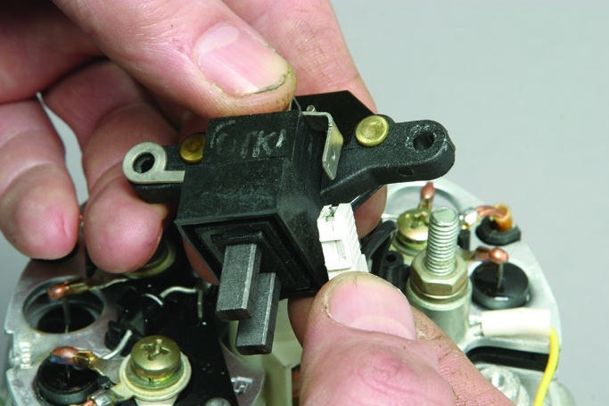 Отсоединяем провод и снимаем регулятор напряжения со щеткодержателем