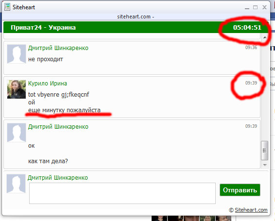 6762ХХХХХХХХХХХХ 0.00 UAH нет кредита Ваш счет в Приватбанке [Тупицкая Алена] 16:22 Тупицкая Алена 6762ХХХХХХХХХХХХ это виртуальный счет на нем нет Вашей ФИО по этому на него нельзя [Александр ] 16:23 Александр а у меня есть НЕ виртуальный счет в личном приват24? Т.е. "Ваш счет в Приватбанке " - это не мой счет... Цирк. Хорошо, 7.Р2Р для приват 24 - что это такое? [Тупицкая Алена] 16:27 Тупицкая Алена с корп.карты на корп.карту [Александр ] 16:29 Александр 9.Платежи на счет в др.Банках Означает ли это, что я могу выполнять платеж с корпюкарты на любой счет в другом банке? В частности Единый налог и налог в пенсионный фонд? [Тупицкая Алена] 16:30 Тупицкая Алена верно платежи в другой Банк [Александр ] 16:30 Александр aA4EA2509004598182 - Забракован. 16.02.2011 [Тупицкая Алена] 16:31 Тупицкая Алена с какой карты на какую забракован,укажите пожалуйчста пожалуйста,когда платеж делали? пожалуйста* [Александр ] 16:33 Александр дата 16.02.2011 УПФУ у Дарницькому районi м. Києва. Номер счета 37190076002622 МФО 820019 С корпоративной карты 4246ХХХХХХХХХХХ Идентификатор документа aA4EA2509004598182 [Тупицкая Алена] 16:33 Тупицкая Алена минуту,пожалуйста [Александр ] 17:35 Александр Гуцульскте километры, приватовские минуты.... Более часа прошло уже. 17:48 - Алена, вы здесь? 18:01 Очень мило пообщались. ============= Это далеко не единственный, волнующий меня вопрос, как говорится: "далі буде!" К слову, по совокупности найденных на сайте багов готов получить анонсированные 10КГрн.