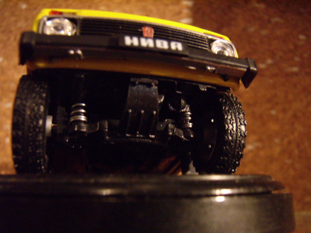 я с большим интересом и уважением отношусь к вашим переделкам моделек, но пружин на амортизаторах нивы не должно быть , не путайте с подвеской переднеприводных ВАЗов. Фото подвески нивы