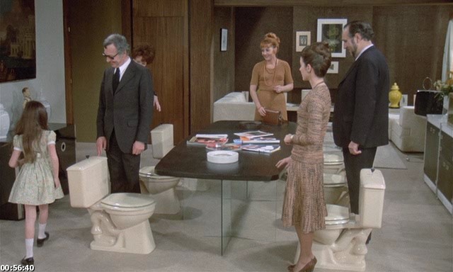 Эта ваша мысль напомнила мне, что идея показать мир под разными углами не нова. Смотрела когда-то фильм Луи Бунюэля "Призрак свободы", название вспомнить не могла и нашла поиском по знаменитому кадру (см. ниже). Этот фильм состоит из новелл, например, развивается сюжетная линия с героями, по ходу действия они куда-то едут на машине, их обгоняет мотоциклист и с этого момента повествование уже цепляется за мотоциклиста (или наоборот, от мотоциклиста к обогнавшей его машине, не суть важно). Еще один пример "другого" видения на приведенном кадре. В фильме показывается, что то, что табуизируется в обществе, меняется местами с привычным, в итоге люди в гостях занимаются совместным облегчением желудков, а потом по одному извиняются, выбегают в закрытую клетушку а-ля туалет и там украдкой кушают.