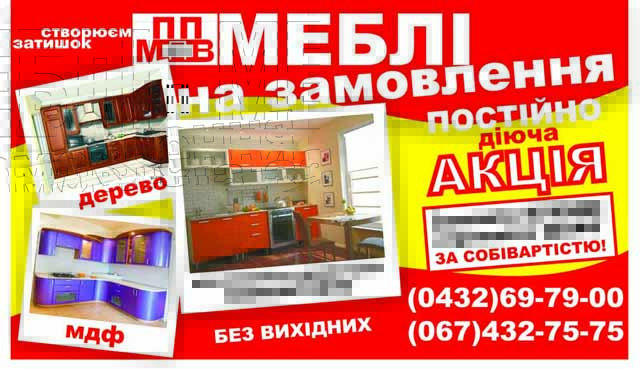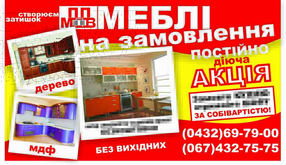Могу помочь с мебелью. Разрабатываю интересный дизайн. Всё индивидуально. Цены не кусаются. Дерево, МДФ и т. д. Для начала, можно проработать варианты дизайна онлайн по скайпу, я потом просчитаю стоимость-ну, а Вам остается принять решение. Производство в Виннице, доставка-не проблема. Звоните 067-432-75-75 0432-69-79-00 Павел
