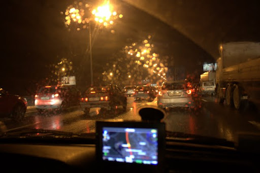В пятницу вечером ехали 20 км по МКАД со скоростью 4 км\час. 5 полос были плотно заняты автомобилями, и еще по двум крайним полосам двигались машины с мигалками и без.