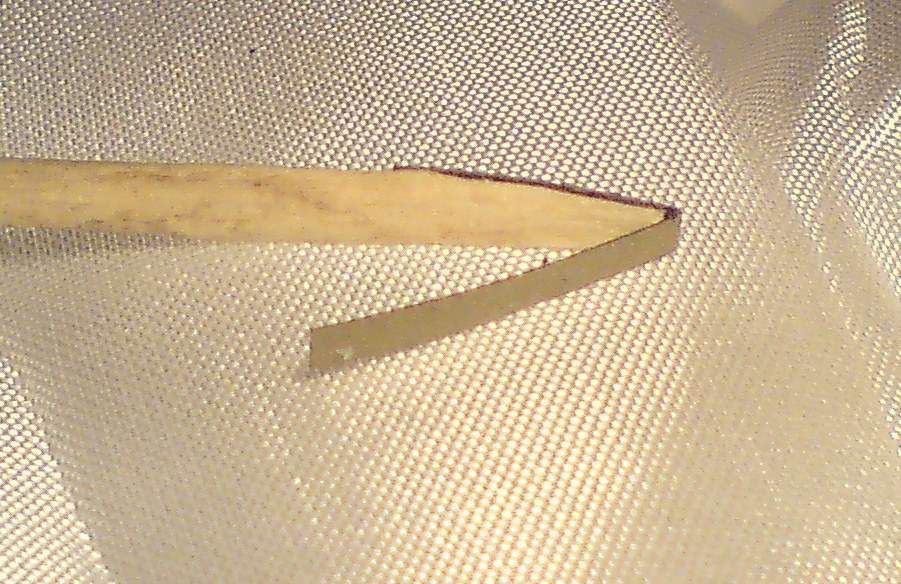 Можно попробовать сделать так:заточить спичку как отвёртку для использования её в качестве направляющей,нарезать полосками наждачку,согнуть её,"надеть" на спичку и шлифовать,в процессе стирания наждачки просто передвигать и по новой сгибать полоску по спичке