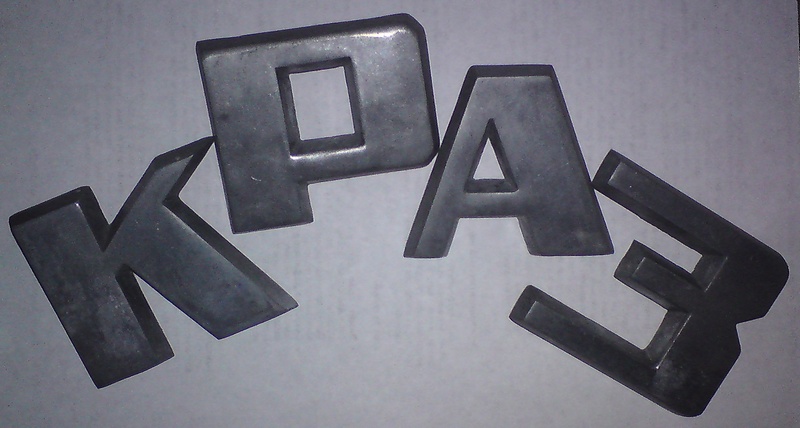 У меня кроме КрАЗовского шильдика показанного ранее есть и вот такие буковки с настоящей машины.Изяществом они не страдают,впрочем как и сами машины да и модели