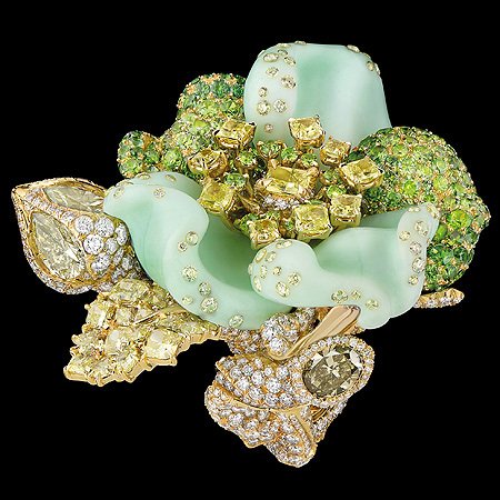 подразнюсь еще-))) не буду выставлять серии Ван Клифа Легендарные балы, не буду Бушероновскими пляжами соблазнять, а поставлю Диор. Обожаю креатив -Виктуар де Кастельян, в этот раз она решила устроить бал для роз. Как бы выглядели розы если бы они решили пойти на бал. Вот на такой заданный себе вопрос ответила дизайнер. получилось.....просто ах и ох. Лепестки это или халдедон, или опалы. Конечно же бриллианты и другие драгоценные камни