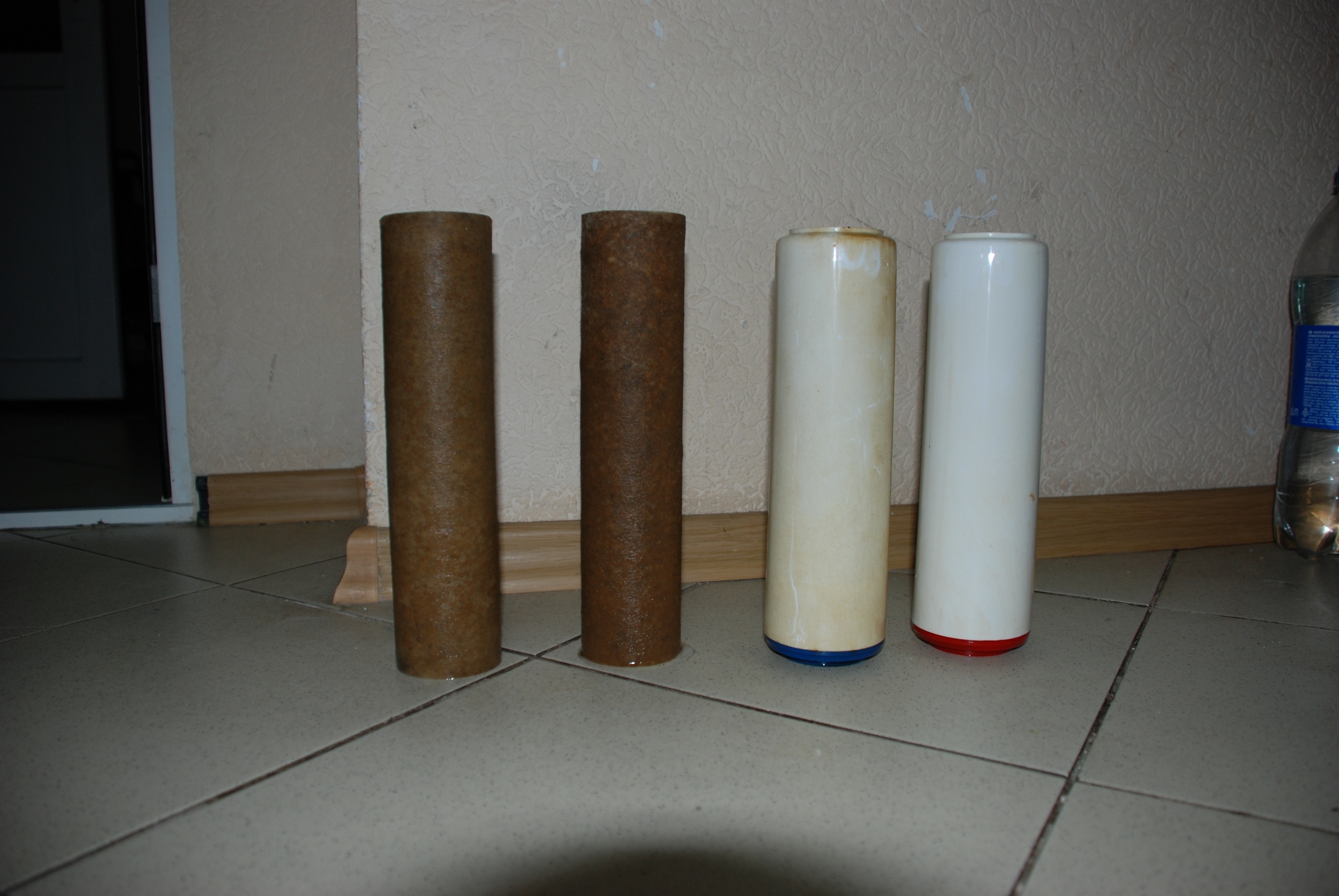 Спасибо Виталию за консультации. Приобрел у него сменные картриджи, установил, все ОК. Попутно еще пару вопросов. Для замены фильтров я полностью демонтирую систему и несу в ванную, там удобно, можно все аккуратно сделать. Установил как советовали полипропилен 5, уголь, полипропилен 1. Точно не нужно промывать уголь? Соединения тоненьких трубочек многоразовые? Нормально, что я отсоединил, потом опять соединил, не нужно трубочки подрезать? Заполнять колбы сразу водой или можно потом, мембране не вредно, что ч/з нее воздух проходит пока наполняются колбы? Фото "отработанных" картриджей