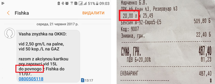 Заїжджаю на заправку і отримую по факту знижку ні 2,5 грн/л., а 1,12 грн/л.???