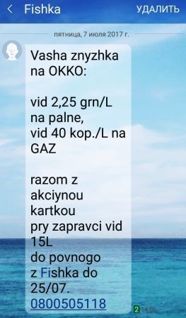 поки писав цей пост(а трошки раніше залив повний бак НЕ на окко) , прилетіла така СМС-ка