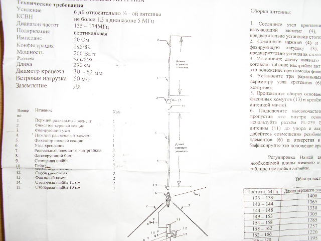 На фотке изображена антенна в транспортном состоянии. материал изготовления АЛЮМИНИЙ! при антенне присутствует паспорт в котором ясно написано название антенны и электрическая характеристика 2 по 5/8. кроме того антенна позиционируется как 136-174 подстройка за счет изменения длины елементов (согласно прилагаемой таблице). посредине между 5/8 устанавливается (прикручивается0 герметический фазовращатель. скан паспорта скину завтра