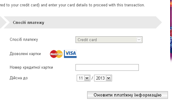 А у тех кто картами платил (через https://ticketing.uefa.com/euro2012-pna/), отображается номер карты? Я его ввожу, нажимаю "Оновити платіжну інформацію", но номер карты не пишется, пустое поле. Думаю, может из-за этого списания до сих пор нет.
