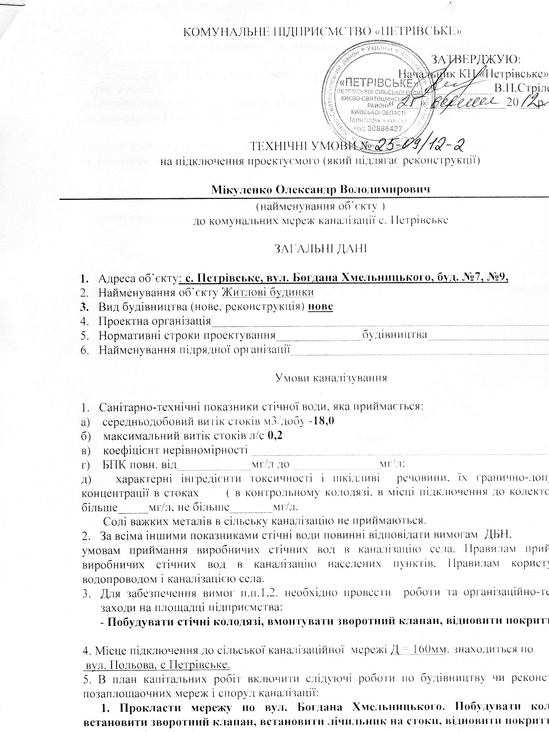 Вы разницу между ТУ и проектом понимаете? И с каких пор КП "Петровское" стало заказчиком подключения к собственной канализации? Короче, я с Вами спорить не намерен - думайте, как вы себе придумали про выгребную яму...