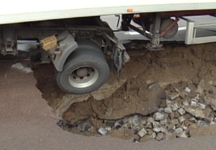 Я там ехала сегодня до провала. Была яма на том месте, нас еще подбросило нехило... Видимо тяжелая фура таки провалила асфальт...