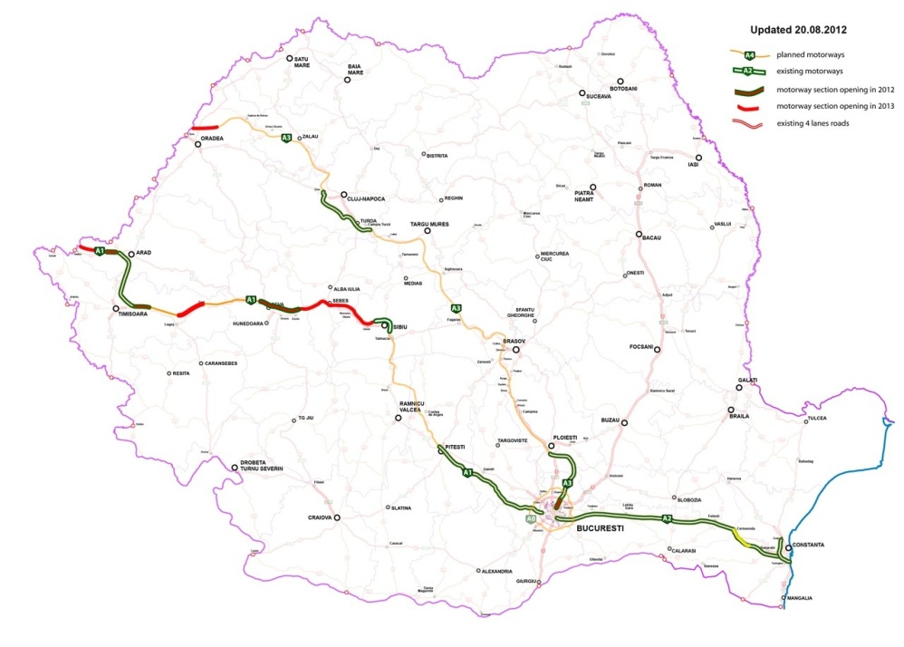 Свіжа карта автобанів Румунії Маленькі червоні кружки на кордонах Румунії - це міжнародні автомобільні пункти пропуску.
