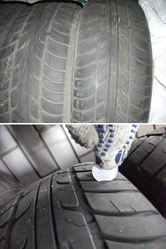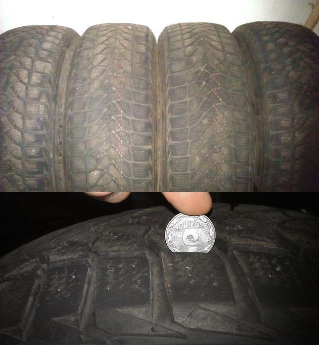 Остаток 2-3 мм, на одном есть шишка, заклеенная кордовым пластырем (отъездила с ним тысяч 30). На двух неравномерный износ. 190 грн. за все.