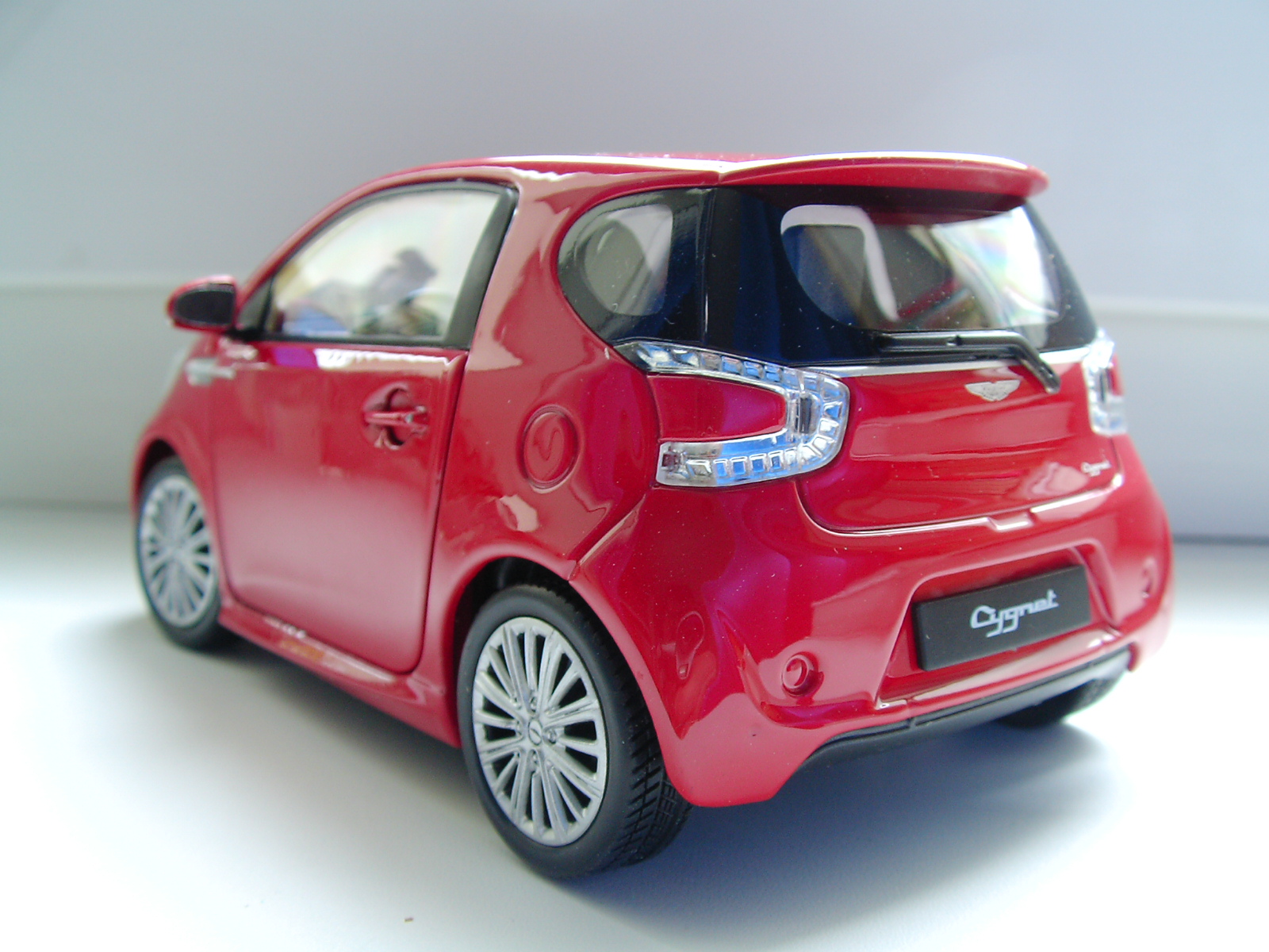 1:24 Welly Aston Martin Cygnet. Cygnet - это значит молодой лебедь или "гадкий утенок" для тех, кто помнит сказку Андерсена. Фактически это копия Тойоты IQ, с небольшими переделками под лицо знаменитого гордого английского бренда. В каком-то историческом фильме восточный правитель после победы приказал покатать плененного голого европейского короля перед строем солдат на осле задом наперед. Так вот от этого автомобиля у меня похожие ощущения - позор для английского автопрома, устроенный узкоплёночными ребятами во всей красе. Интересно, чей автопром будут катать на осле с голой попой следующим? Воображение рисует такие вот модерновые "горбатые" Запорожцы с передками от Мерседесов, Роллс-Ройсов и Бентли или с эмблемами Ламбо и Феррари... Думаю, если бы лет пятнадцать-двадцать назад такую картинку показали инженерам с Астона, они бы долго смеялись над дикой фантазией автора.