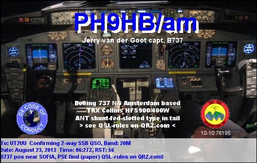 Боинг 737 над Софией "подстрелил". Работал он на штатную самолетную антенну и рацию - могу сказать, что слышен был весьма громко. Как то не ожидал даже, что с самолета так громко будет слышно.