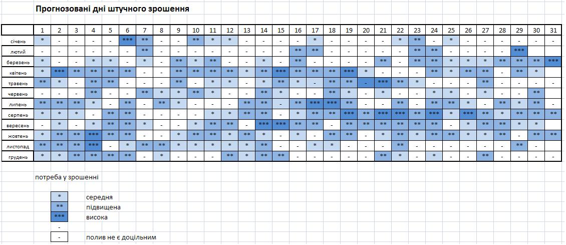 Щорічний графік збалансованого зрошення