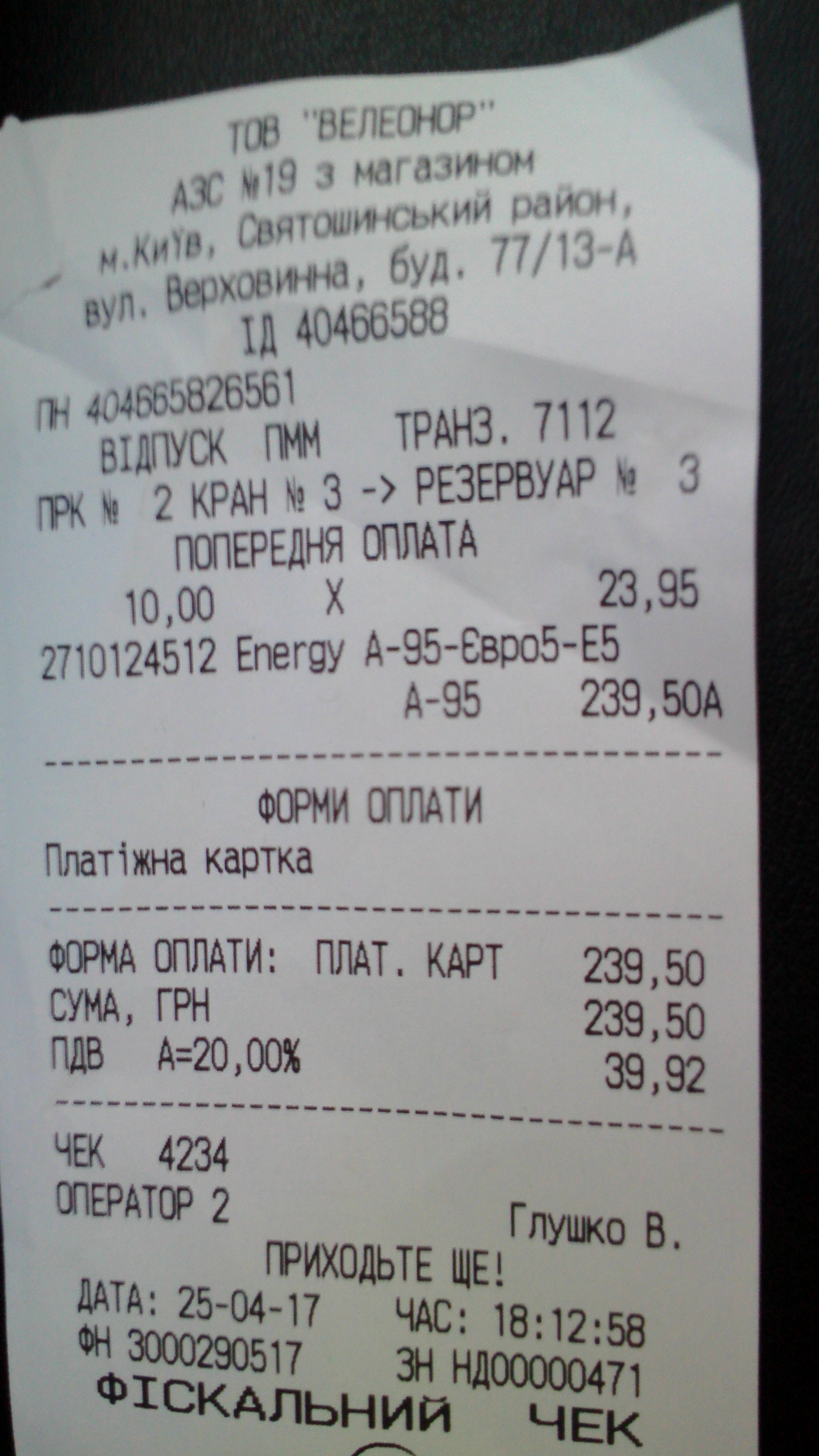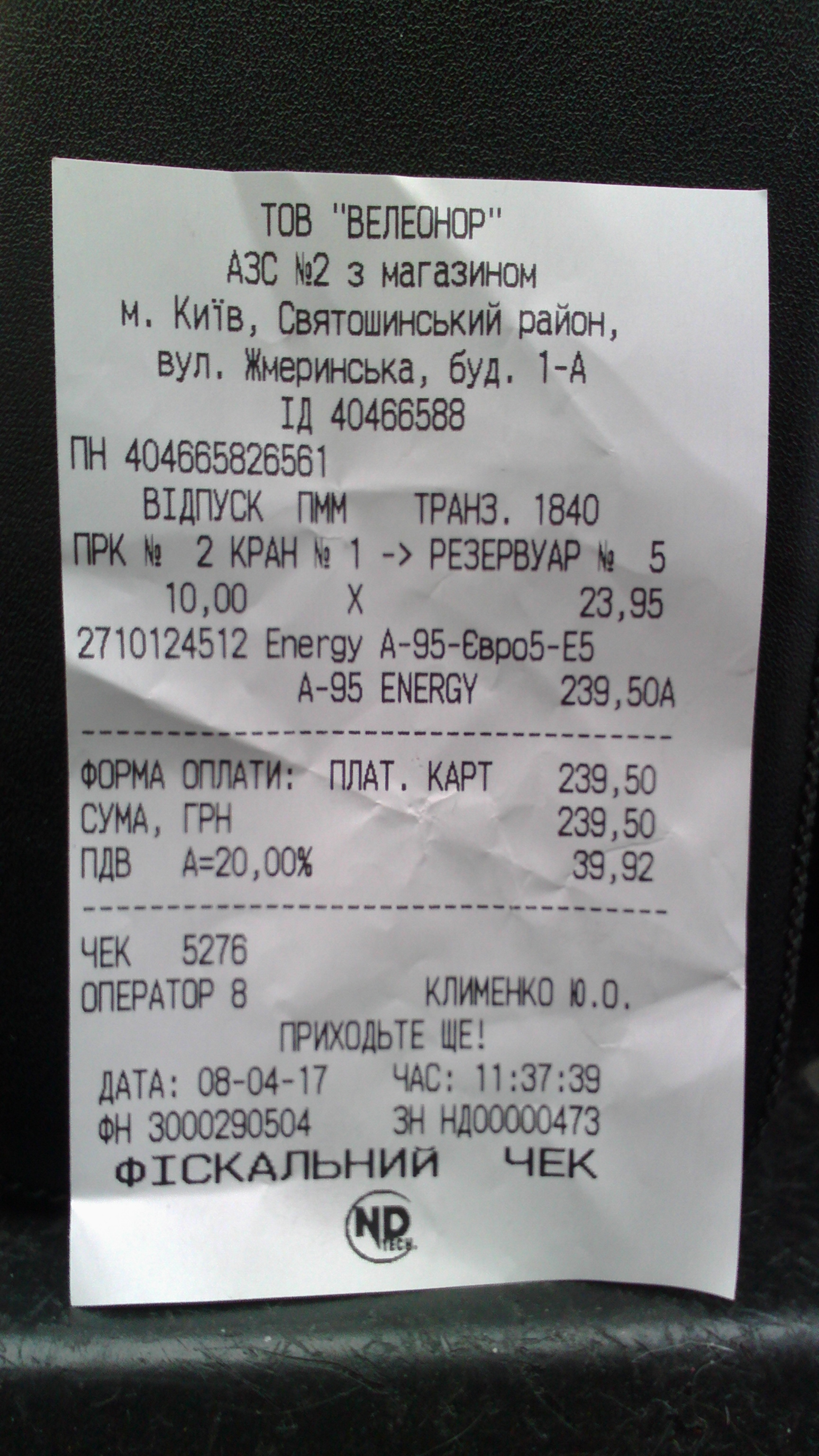 В Запорожье пока в чеках пишут А-95-Евро-4-Е5, хотя чек конечно не показатель. Кстати, интересно, у них Energy-95 от обычного чем-то вообще отличается, или нет. И тот и тот Кременчуг, а по заявлению НПЗ у них во все бензины добавляется присадка BASF Keropur.