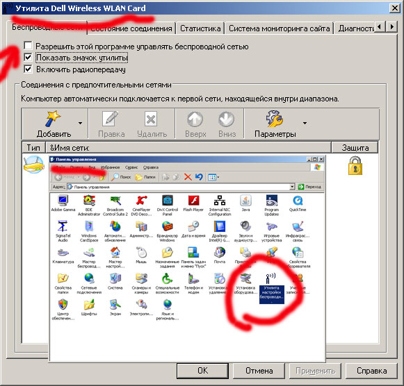зайди в Панели управления в утилиту, которая управляет настройками вифи и сними галочку: "Разрешить программе управлять беспроводной сетью" у меня эта херь весь мозг выела одно время. даже сидел со шнурка, думал вифи сдох