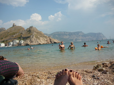 Насчет моря. От Бахчика 40 км до пос. Песчаное. Там у Привала есть свой пансионат "У Лукоморья", который можно свободно посещать. Но там вымыло весь пляж, поэтому из плюсов только малое кол-во людей. Основной минус - здоровые фиолетовые медузы (почему-то на западе Крыма их именно таких всегда куча). Мы открыли себе другой путь. Если ехать от Бахчисарая по дороге через Терновку, то до Балаклавы всего 50 км. Туда мы и ездили купаться на Мраморный пляж (там в баре на пляже очень вкусный шашлык из рапанов!). Сама дорога очень живописная, в частности проходит возле горы Мангуп и одноименного озера, имеющего малахитовый цвет. Там тоже вполне купаться можно. И, если не ошибаюсь, на Мангупе кажись тоже какое-то жилье видел.