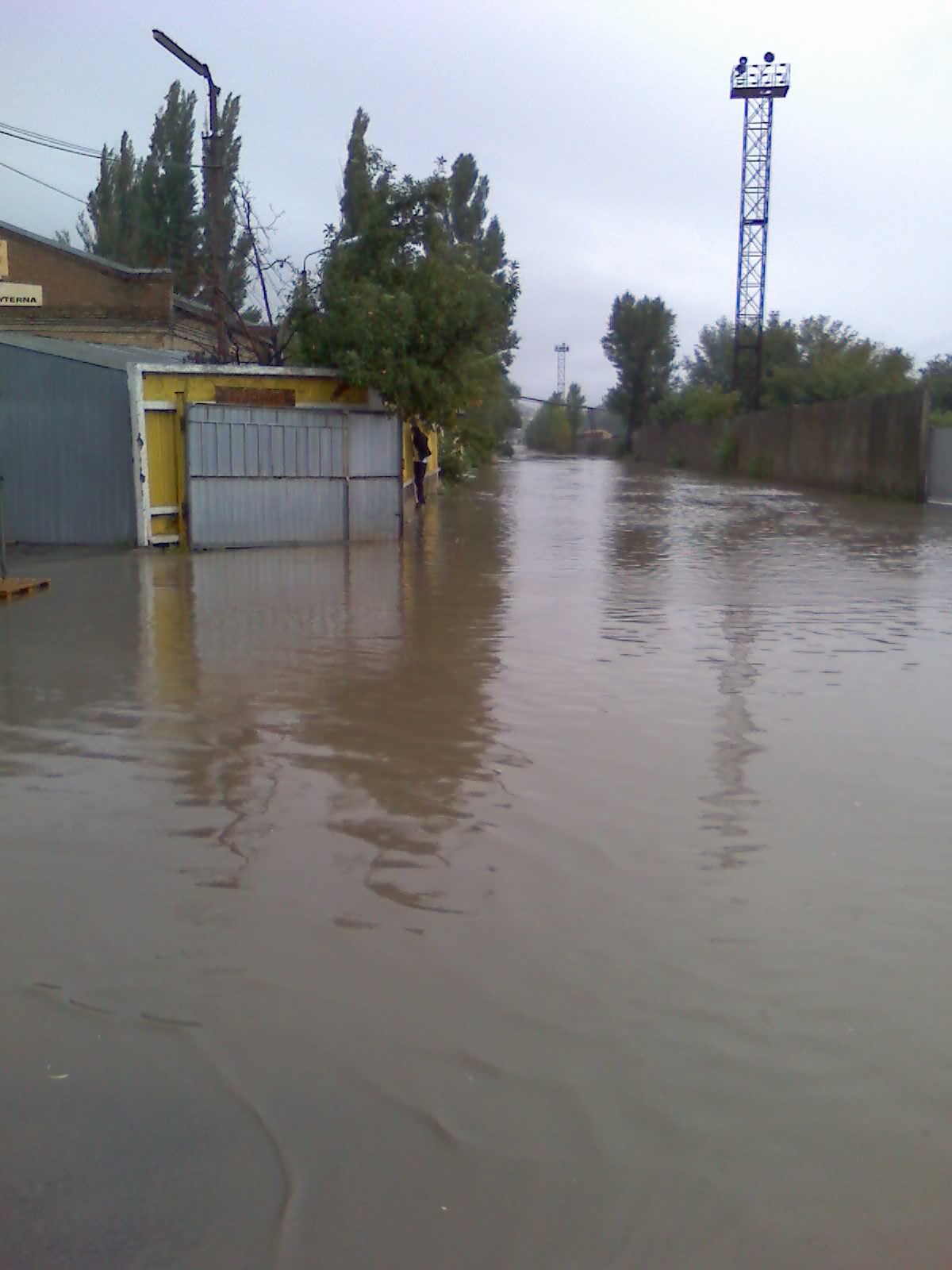 По Червонопрапорной не только грузовики, еще люди на этой улице работают, ходят, ездят на работу. Под коллективным письмом Попову подписалось 294 человека. Это не повод сделать дорогу?Обратите внимание, слева на желтой стене человек пытается перейти лужу. Забегая вперед, скажу, что ничего у него не получилось, оказался по колено в воде.