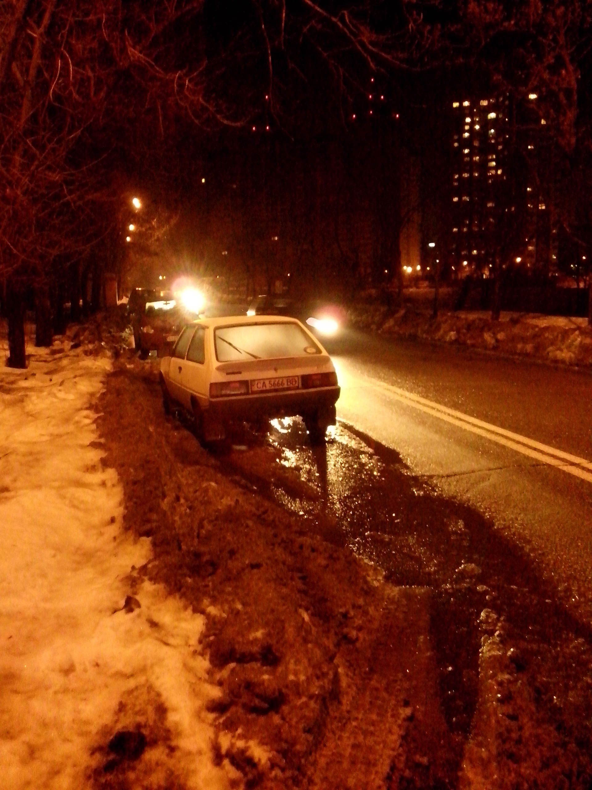 Давеча, третьего дня (во вторник вроде) в снегопад был замечен завязшим по самые помидоры в рыхлом снегу прямо посреди тротуара, сегодня таки доехал до почищенного.